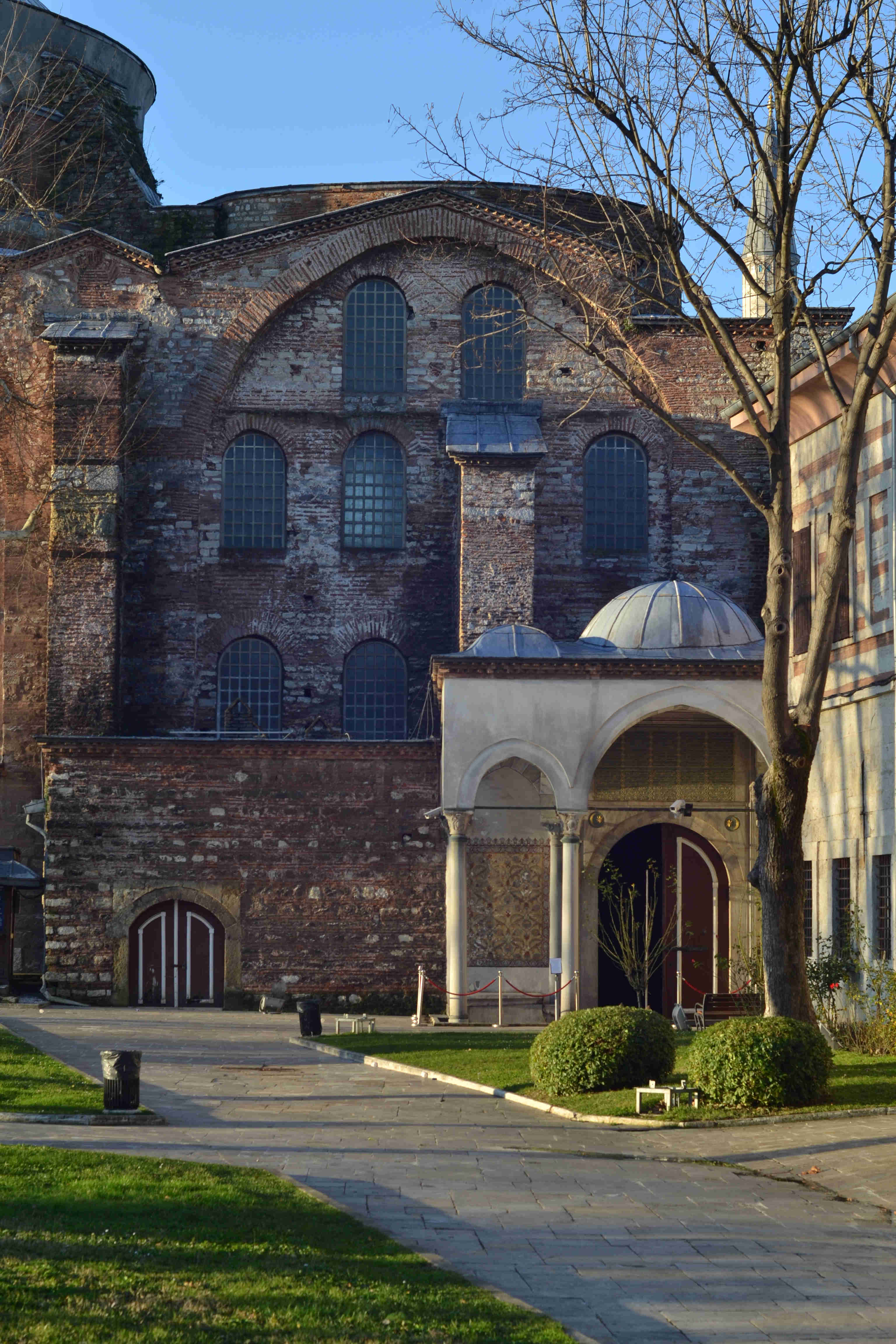 Aya İrini (Hagia Eirene) ou Sainte-Irène se trouve dans la cour extérieure du Palais de Topkapı3. L’édifice actuel représente un palimpseste où l’histoire de Constantinople se dessine en filigrane. Fondée au IVème siècle ap. J.-C., c’est la première cathédrale de la ville (avant l’inauguration de Sainte-Sophie). Le bâtiment actuel date du règne de Justinien (règne 527-565) et connu une importante rénovation au VIIIème siècle après un incendie. Au cours des 13 siècles suivant, l’édifice fut endommagé et aménagé à de nombreuses reprises. À la différence de Sainte-Sophie, l’église ne fut pas transformée en mosquée et ne fut donc pas modifiée. Elle servit d’entrepôt de munitions et de tributs de guerre et était dénommée “Cebehane” (arsenal)4.