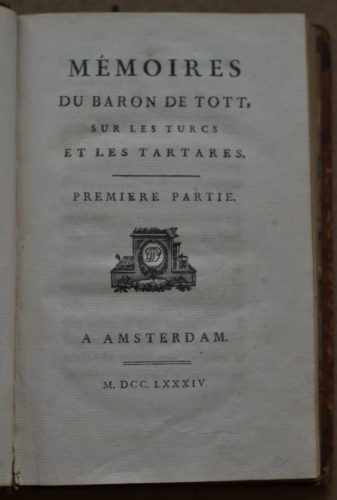 Tott, François de, Mémoires du Baron de Tott sur les Turcs et les Tartares, Amsterdam, 1784.